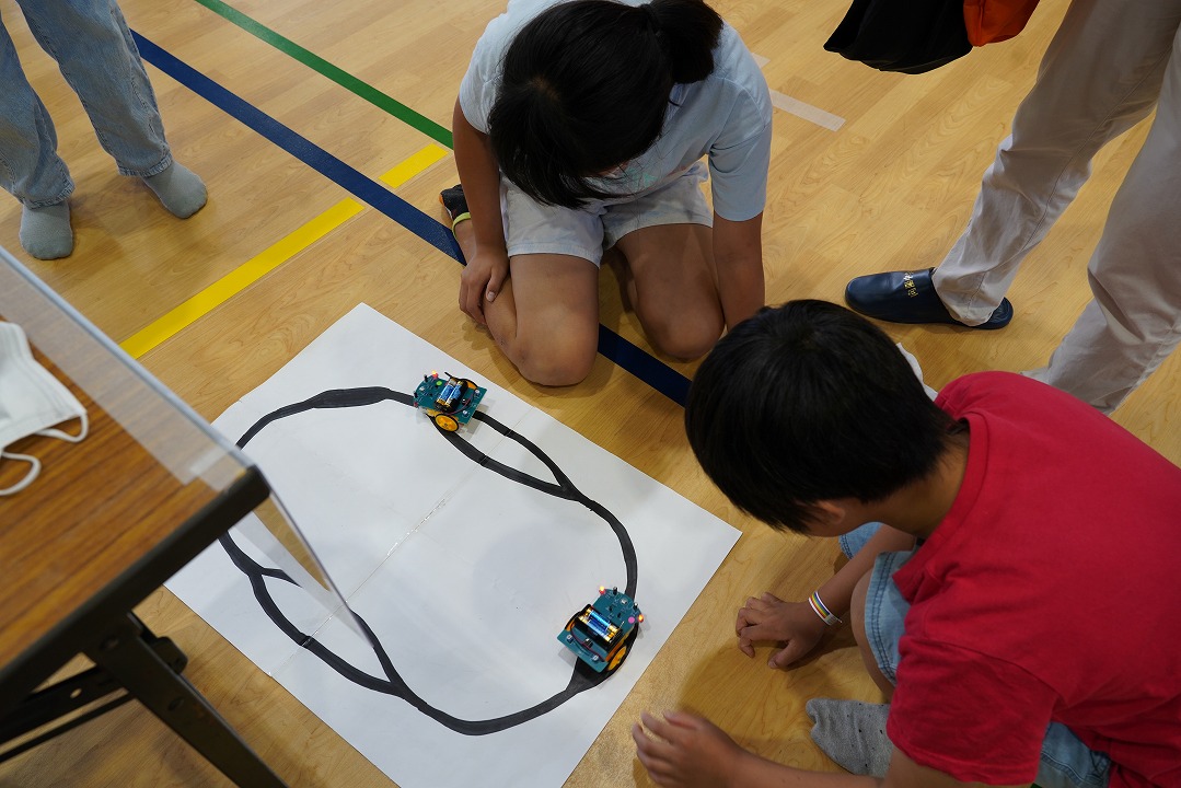 白い紙に書いた黒い線にそって走るライントレースカーを作ろう!